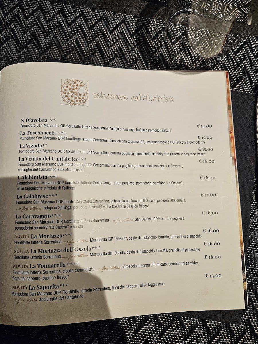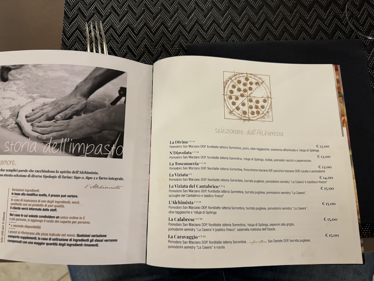 L'alchimista Menu