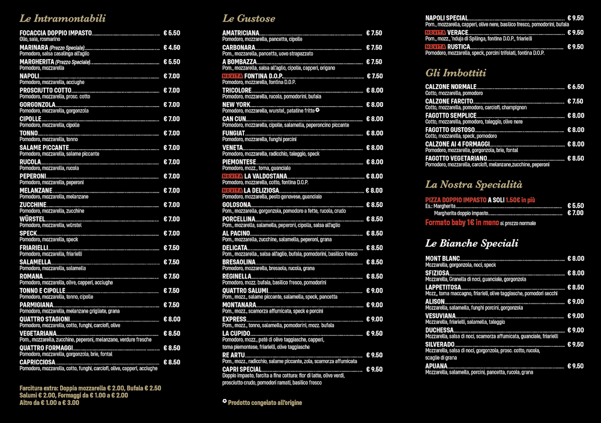 Signature options like Pizza Carbonara and Pizza Fontina showcase a balance of rich, familiar flavors, while highlighted specialties such as the Doppio Impasto and Tartufo al Pistacchio hint at the care put into dough and toppings. Whether you're settling in with friends over a shared Birra or ending on a sweet note with gelato, the menu supports an atmosphere that’s welcoming and warm, encouraging lingering and conversation.
